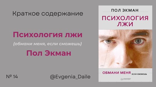 Психология лжи. Обмани меня, если сможешь. - Пол Экман. | Краткое содержание.