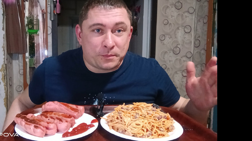 Мукбанг/обжор/салат с корейской морковкой, запечённые сосиски/