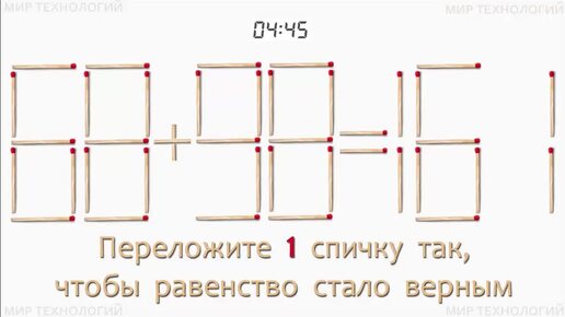 Задача 458. Переложите 1 спичку так, чтобы получилось верное равенство (68+98=161). Задачи и головоломки со спичками.