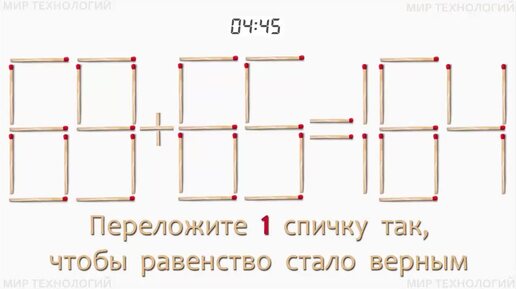 Задача 459. Переложите 1 спичку так, чтобы получилось верное равенство (69+65=164). Задачи и головоломки со спичками.