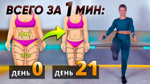 МОЩНОЕ Жиросжигающее УПРАЖНЕНИЕ на ВСЕ ТЕЛО! 🔥 ХУДЕЮ за 1 МИНУТУ‼️ Челлендж на 21 День