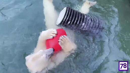 У белой медведицы в Ленинградском зоопарке начались первые купания