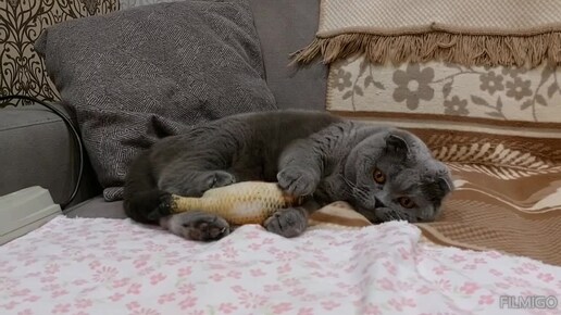 Красавица кошка Санта и подружка рыбка) Шотландская вислоухая кошка.