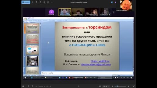 1. Доклад В.А. Чижова, член-корр. РАЕН, к.ф.-м.н. - Эксперименты с торсиндом или влияние ускоренного вращения тела на другое тело , часть 1