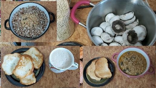 Мой пост, день 32~й. Гренки. Грибная подлива с соевым фаршем. Греча.