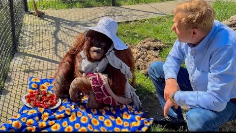 Да, таких кадров Я НЕ ВИДЕЛА! Олег Зубков просит орангутана Дану дать ему клубничку, ВОТ ЭТО ВЗГЛЯД)