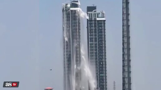 Вода выливается из небоскребов во время землетрясения