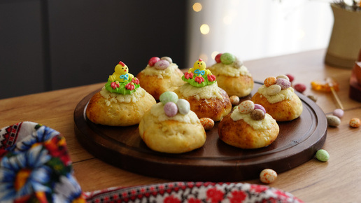 Пасхальная выпечка. Быстрые творожные булочки без расстойки