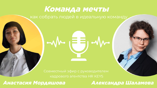 Как собрать команду мечты. Эфир с руководителем кадрового агенства HR KEYS Анастасией Мордяшовой