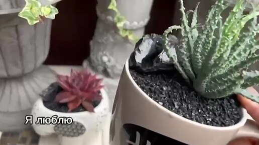 Как за 15 минут сделать интересные композиции с суккулентами, в оригинальных кашпо, с отсыпкой из декоративной черной крошки
