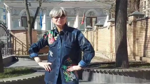 Декор джинсовой рубашки винтажной вышивкой.