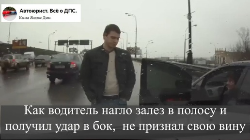 Как водитель нагло залез в полосу и получил удар в бок, не признал свою вину