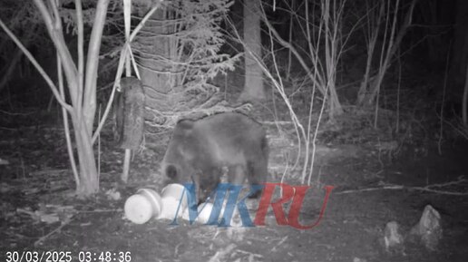 Медведя, подравшегося с колесом, сняли на видео в Подмосковье