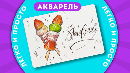 Рисуем клубничный десерт акварелью__Рисуем просто и легко с Dari Art