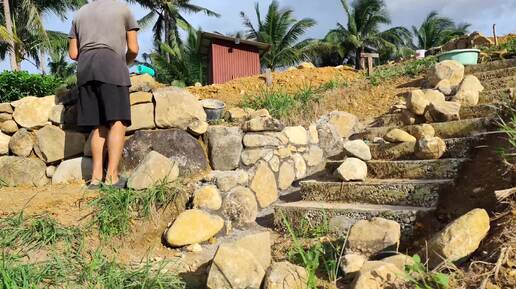 Батя выкладывает стенку из природного камня | Меняем колёса | Жизнь в деревне