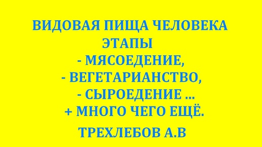 ВИДОВАЯ ПИЩА ЧЕЛОВЕКА, ЭТАПЫ - МЯСОЕДЕНИЕ, ВЕГЕТАРИАНСТВО, СЫРОЕДЕНИЕ... + МНОГО ЧЕГО ЕЩЁ. ТРЕХЛЕБОВ А.В 2025,2026,2027