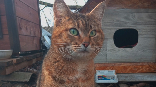 Очень умная кошечка просит помощи, греться ей негде, щель в подвал завалили камнями