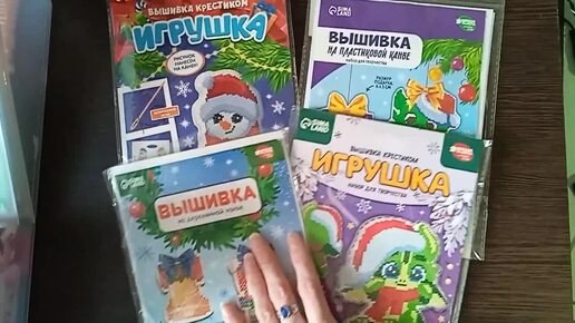 Небольшой обзор детских наборов для вышивки новогодней тематики с сайта "Сима-ленд" (на канве, пластиковой основе, деревянных заготовках)