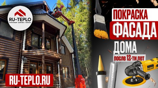 Покраска фасада дома из оцилиндрованного бревна