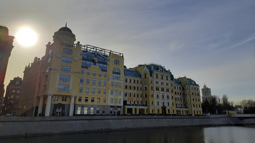 Виды на"Архитектуру Якиманской набережной" и Петра I на Москва-реке с Болотной набережной