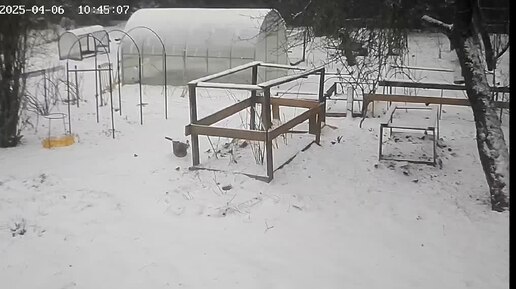 20250406 Хорошо, что когда мы уезжали с дачи, оставили корм для птиц. Посмотрите, что творится, снегопад, метель и птичий базар.