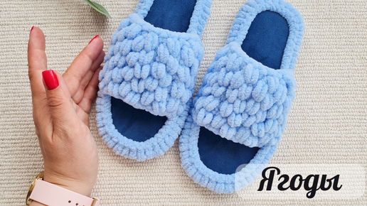 Тапочки крючком, модель "Ягоды" с открытым носиком