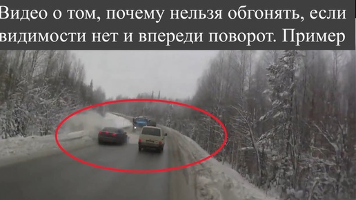 Видео том, почему нельзя обгонять, если видимости нет и впереди поворот. Пример
