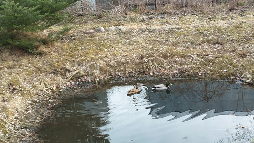 Дикая уточка и селезень на пруду
