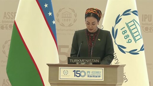 Дуньягозель Гулманова на пленарном заседании 150-й юбилейной Ассамблеи МПС