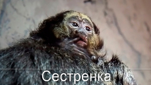 Белолицый саки по имени Кеша растет без мамы, а его маленькая сестренка в кругу семьи.