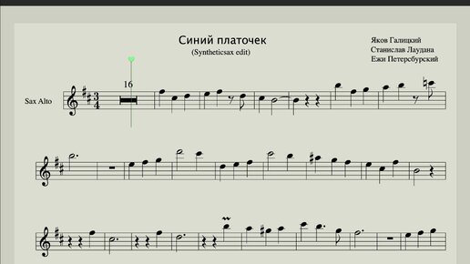 Синий платочек - Ноты для саксофона альт