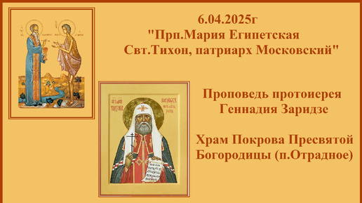 6.04.2025г "Прп.Мария Египетская. Свт.Тихон, патриарх Московский" Проповедь протоиерея Геннадия Заридзе. Храм Покрова Пресвятой Богородицы