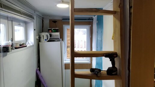 Ремонт старого дачного домика. Лестница гусиный шаг на мансарду.
