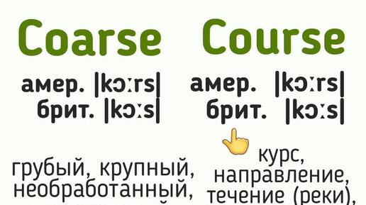 Похожие по звучанию/написанию слова (с разным значением)👉coarse / course