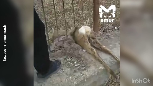 Добрая история из Приморья: молодая косуля застряла в заборе, когда убегала от стаи собак! Неравнодушная жительница позвала на помощь!