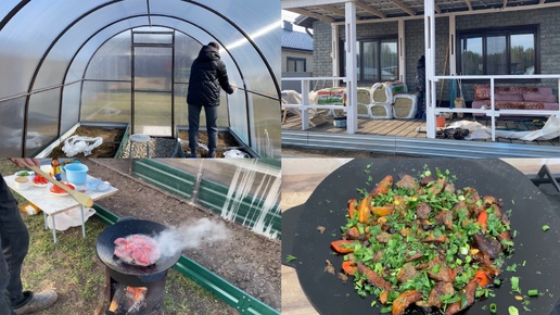 УБОРКА НА УЧАСТКЕ// СНЯЛА ПЛЁНКУ С ТЕПЛИЦЫ// ПОРЯДОК НА ТЕРРАСЕ// ГОТОВИМ В САДЖЕ🔥