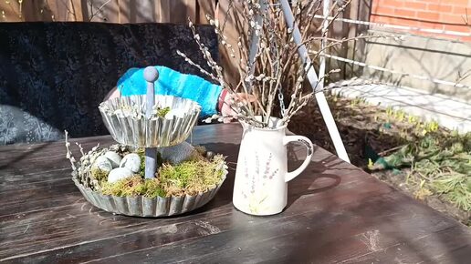 Этажерка для садового декора из старых ненужных форм для кексов👌