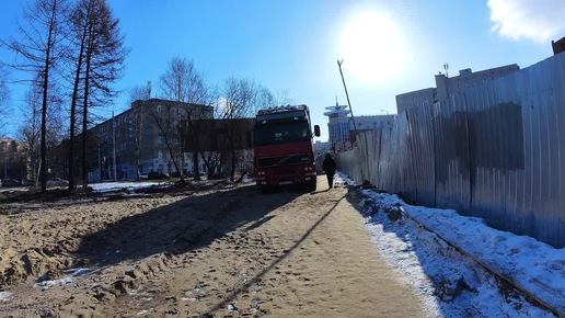 В Ломоносовском парке водитель грузовика припарковался на тротуаре, создав препятствие для пешеходов