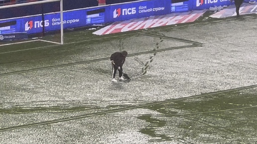 Как убирали поле перед матчем ЦСКА - Динамо