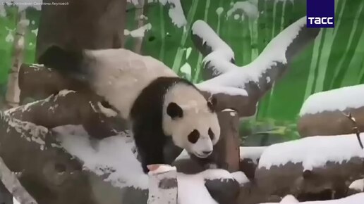 В Московском зоопарке большие панды прогулялись в снежную погоду