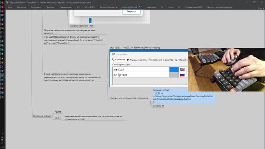 Индикатор раскладки. Правим баги UI, команд + панель для диагностики