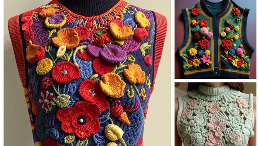 ЖИЛЕТКИ с ЦВЕТАМИ. ВЯЗАНИЕ от AI.