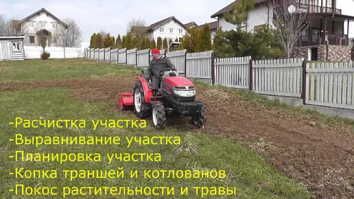Расчистка и выравнивание дачного участка мини трактором под посев газона. Примеры работ!