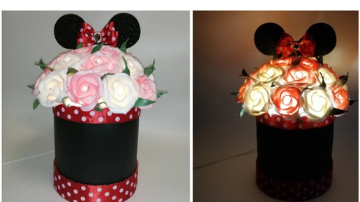 МК Букета роз в шляпной коробке._Микки Маус_.светильник из изолона.