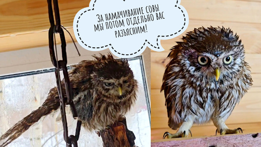 Птицы в шоке от количества весеннего снега, и мы тоже. Мочим маленькую сову.Снега больше, чем зимой