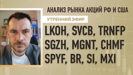 Анализ рынка акций РФ и США/ LKOH, SVCB, TRNFP, SGZH, MGNT, CHMF/ SPYF, BR, SI, MXI