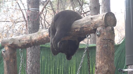 Гимнастические упражнения медвежонка Дуси на бревне. 06.04.2025