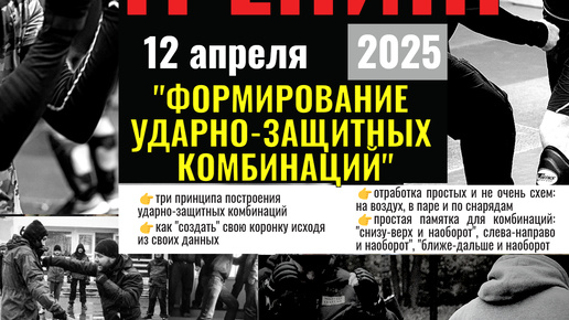 Тренинг 12 апреля 2025 год, Москва: "Формирование ударно-защитных комбинаций"