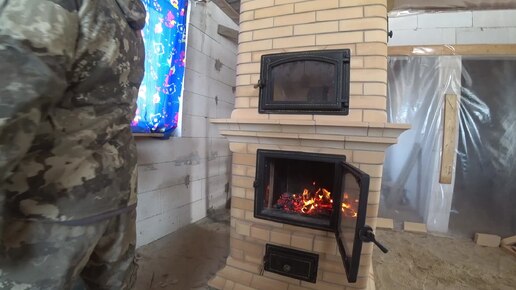 Камино-печь из белого кирпича Лотос с духовкой по белому.