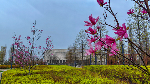 Парк Галицкого. Магнолии и "Капля" ("Геолокация"). Краснодар. Начало апреля 2025